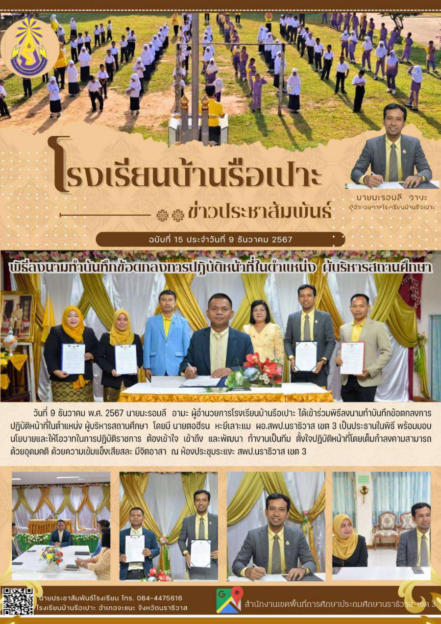 พิธีลงนามทำบันทึกข้อตกลงการปฏิบัติหน้าที่ในตำแหน่ง ผู้บิรหารสถานศึกษา